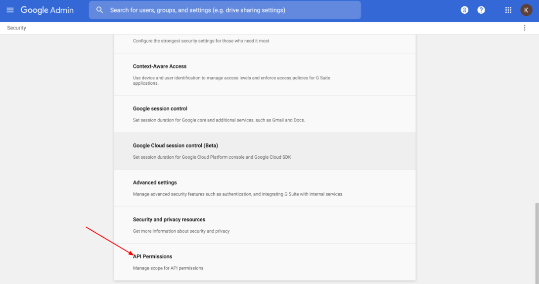 2. Em seguida, os administradores devem rolar para baixo e clicar em “Permissões API”.