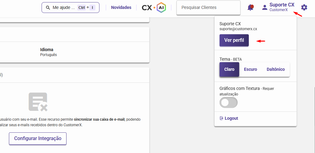 Que seu e-mail esteja corretamente integrado ao CustomerX;