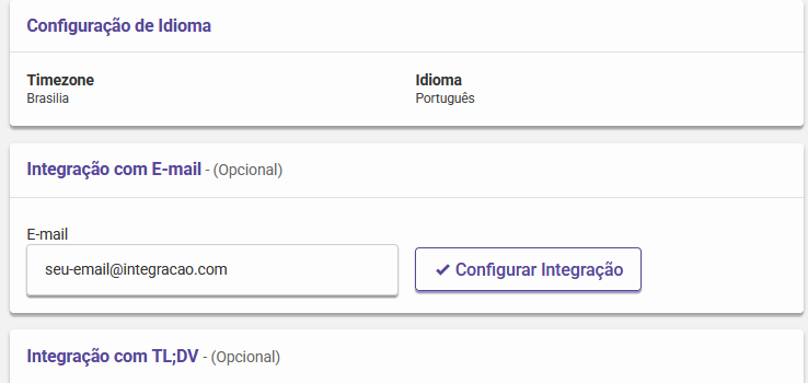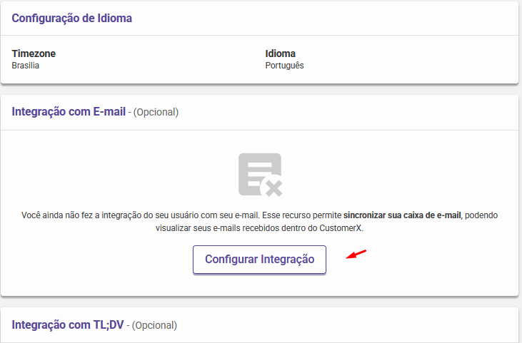 Nos detalhes do seu usuário, role até o final da página, na seção "Integração com E-mail", e clique em "Configurar Integração":