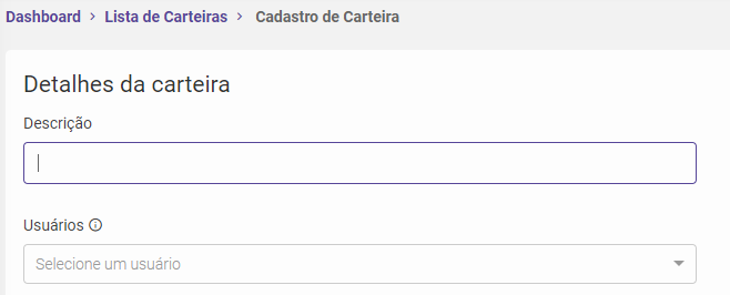 No campo de usuários, você pode vincular os usuários que deverão ter acesso apenas a essa carteira.
