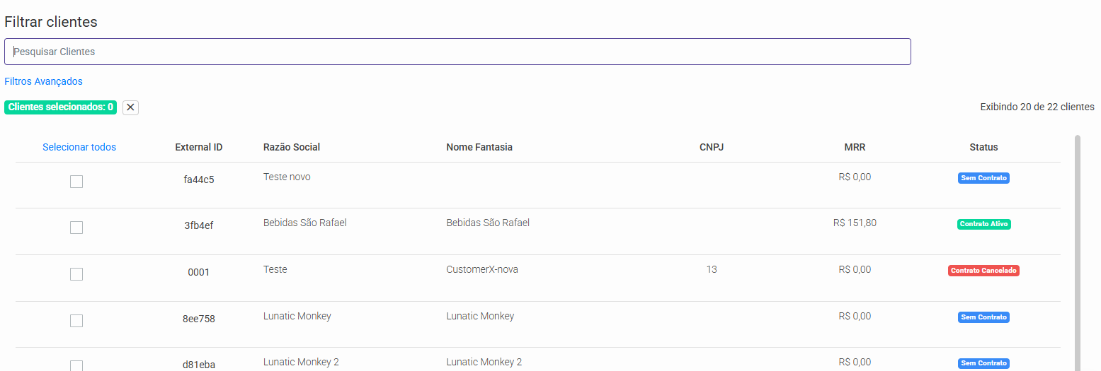 Por fim, você pode filtrar e selecionar os clientes que você deseja adicionar a sua carteira.