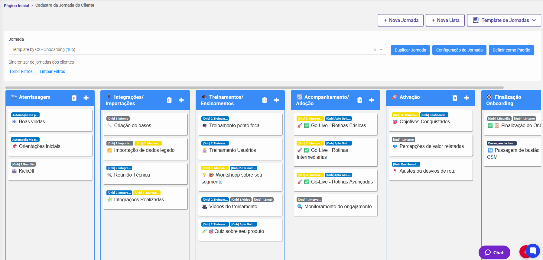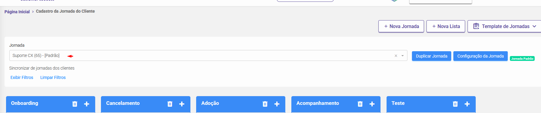 Ao definir um modelo de jornada para o cliente, seja com base no produto/serviço contratado ou no nível de interação esperado, você pode configurar a Jornada do Cliente diretamente na plataforma.