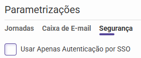 Está aba é destinada diretamente para habilitar o SSO como forma única de autenticação. Ao ativa-la, todos os usuários serão obrigados a utilizar SSO para realizar a autenticação na plataforma