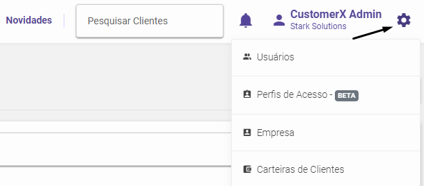 Para localizar o cadastro, acesse a engrenagem (superior direita) > Empresa.