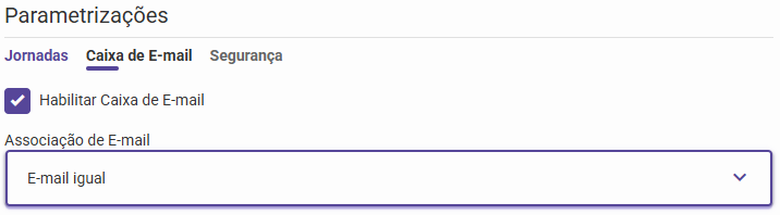 Nesta aba você poderá habilitar a Caixa de email e definir a regra de associação de e-mail. A regra de associação definie se um e-mail será atribuído ao cliente mediante a: