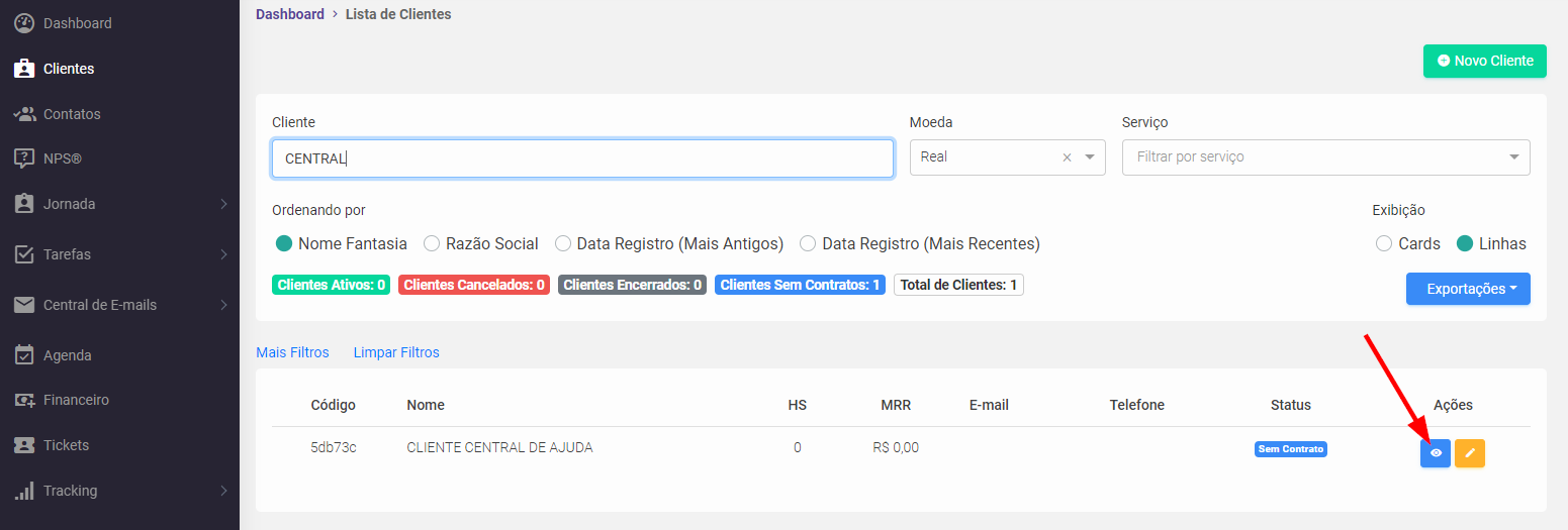 2) Na tela Detalhes do Cliente, cliente em Contratos