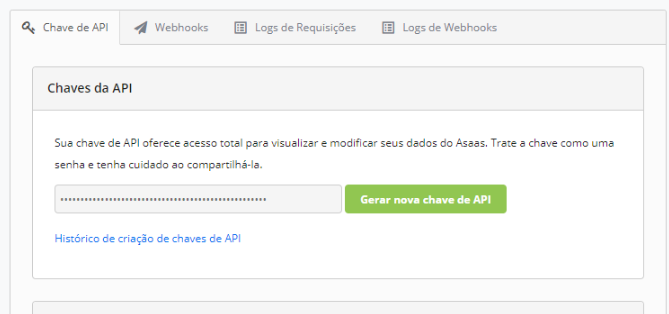 Para obter sua API Key acesse a área de integrações na interface web do ASAAS.