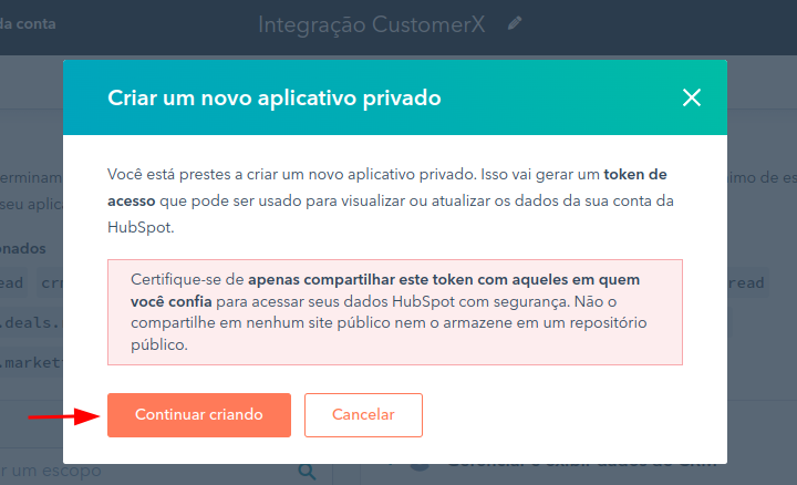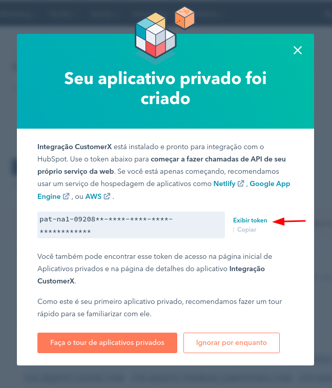 Uma vez com o token em mãos, enviar ao time de Onboarding ou Customer Success da CustomerX.