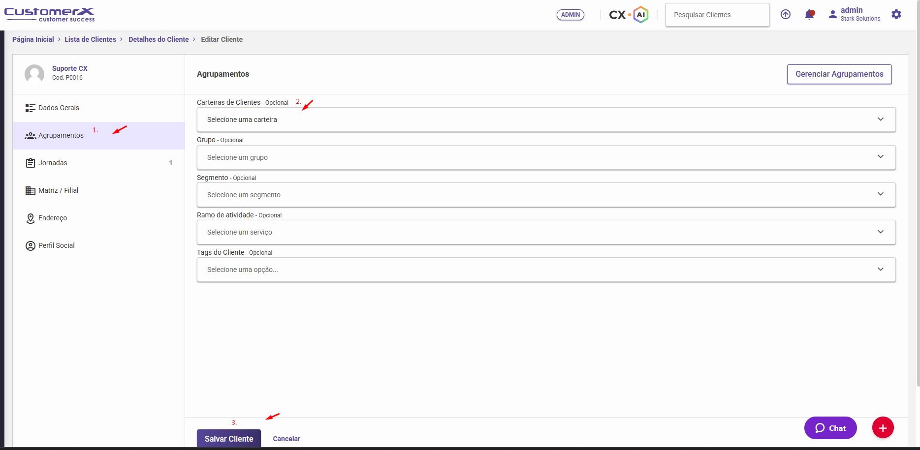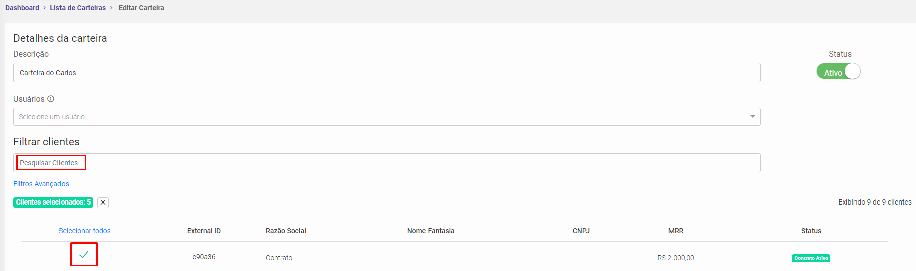 Lembre-se que, além de vincular a carteira a vários clientes como visto acima, é possível realizar essa operação via edição do cadastro do cliente.