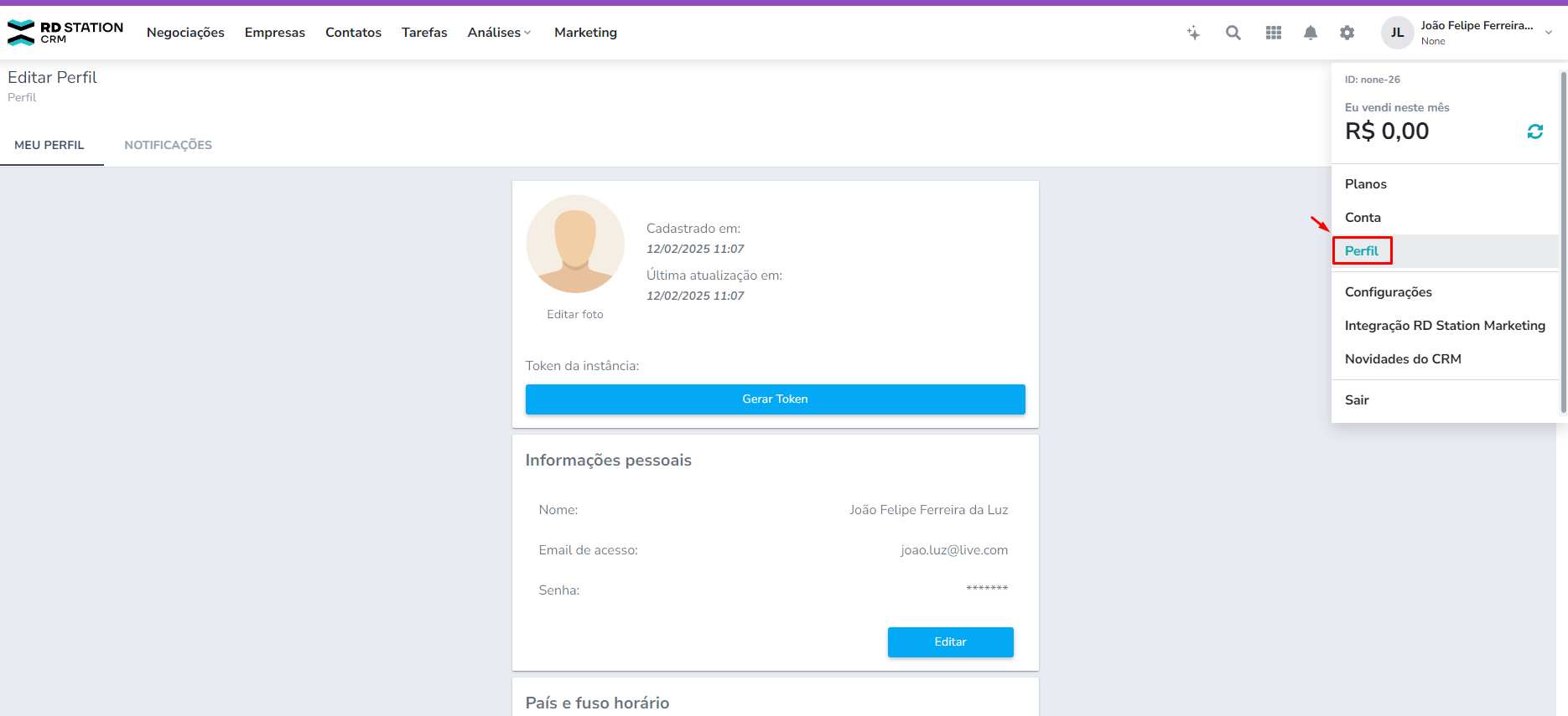 Para realizar a integração do RD Station CRM é necessário a geração do Token da API que pode ser feito conforme passo a passo abaixo: