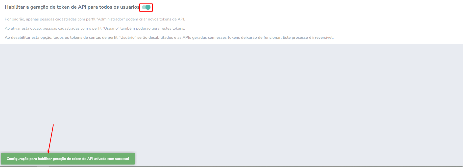 Passo 5: Habilitar a geração do token da API para todos os usuários: