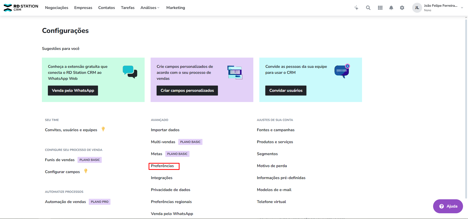 Passo 1: Acesse sua conta do RD Station CRM: