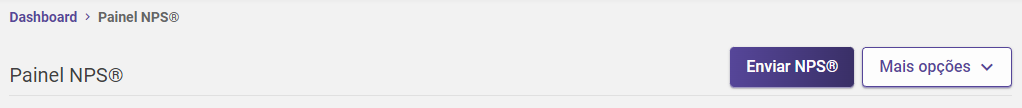 No cabeçalho da página ao lado direito da tela é possível identificar os botões "Enviar NPS" e "Mais opções":