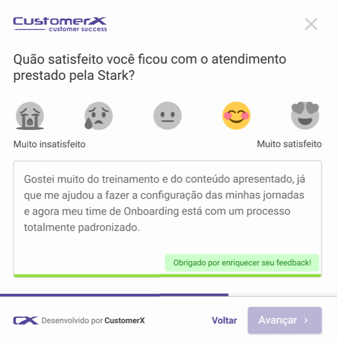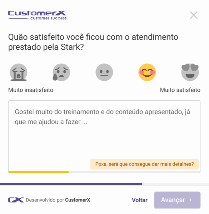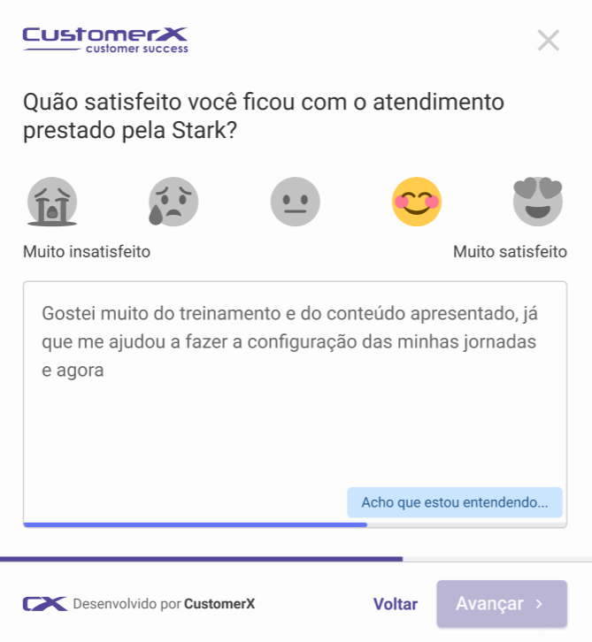 Este novo recurso tem como objetivo melhorar a experiência do respondente e garantir que as respostas sejam mais ricas e informativas. Esperamos que ele contribua significativamente para a qualidade de nossas pesquisas de feedback.
