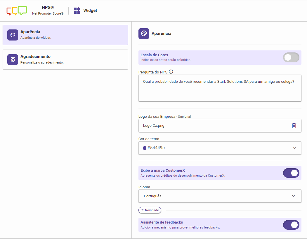 Você também pode ativar o assistente de feedbacks. Ele consiste em um mecanismo que vai auxiliar seu cliente, a prover uma resposta completa e com boa qualidade para análise. Você pode entender mais detalhes: Ir para Assistente de Feedbacks >