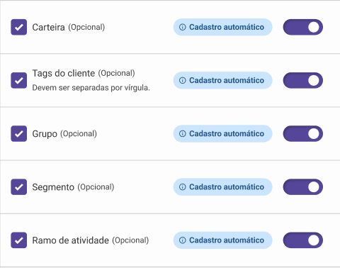 Cadastro Automático: Para atributos que permitem múltiplos valores ou que são cadastráveis (como segmentos, carteiras, grupos, tags, etc.), o sistema primeiro verifica se o valor existe no CustomerX. Se não encontrar, um novo registro será criado automaticamente com o valor fornecido na planilha. Certifique-se de que os valores na planilha estejam corretos para evitar cadastros indesejados.