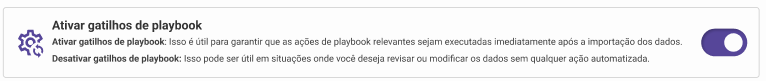 Ativar Gatilhos de Playbook: Se ativado, as ações automatizadas de playbook serão executadas imediatamente após a importação dos dados. Isso é útil para garantir que as ações relevantes sejam acionadas com base nos novos dados importados.