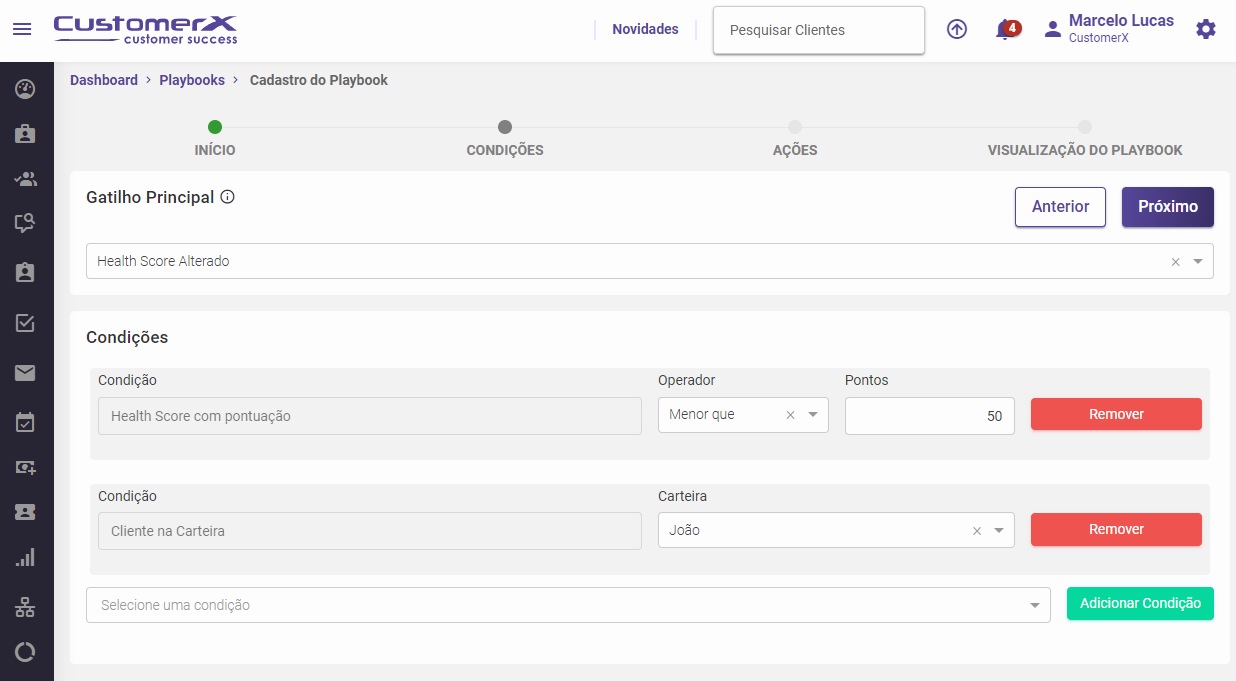 No CustomerX você pode configurar notificações através de playbooks, função que permite criar notificações mais direcionadas e personalizadas para cada necessidade.