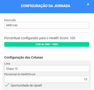 Caso o cliente tenha Health Score acima disso, o sistema faz uma regra de pontuação sobre as tarefas concluídas de etapas da jornada que estejam marcadas como gera oportunidade de upsell.