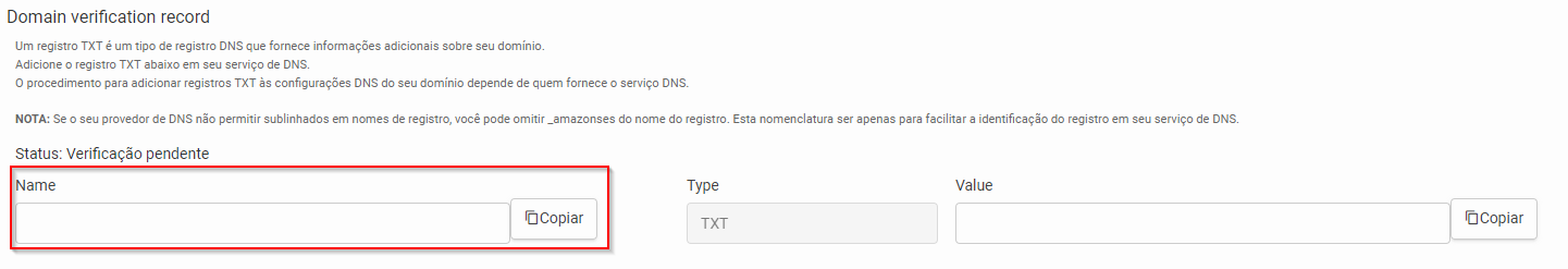 Crie um registro CNAME com o nome apresentado no campo "Name".