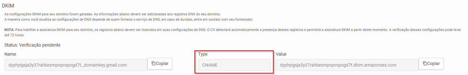 Uma vez que a propagação seja concluída, o DKIM estará configurado para o seu domínio, e os e-mails enviados pelo CustomerX poderão ser autenticados com sucesso.