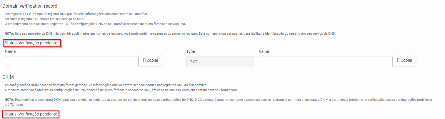 Depois de adicionar esses registros, é feita a verificação pelo servidor e pode levar algum tempo para que as alterações de DNS se propaguem pela internet. Isso pode variar de minutos a algumas horas.