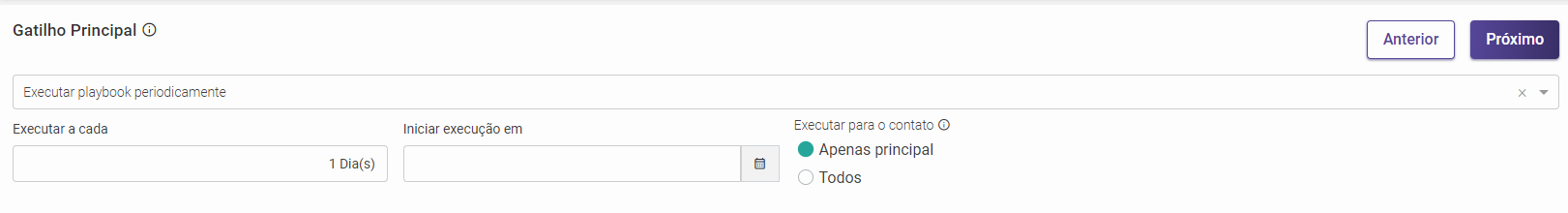 Escolha o gatilho "Executar playbook periodicamente".