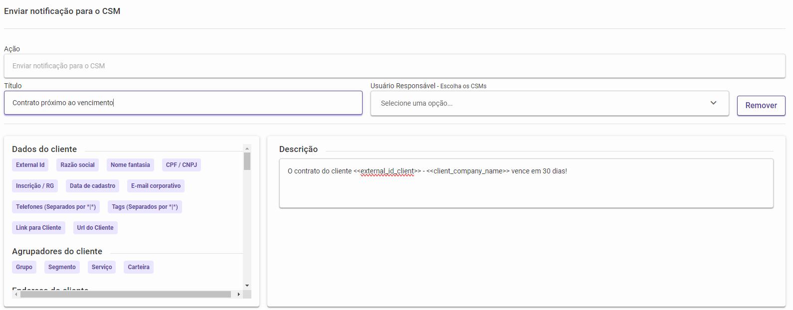 Com a configuração do playbook concluída, seu sistema irá notificar automaticamente o CSM sempre que um contrato estiver a 30 dias do vencimento.