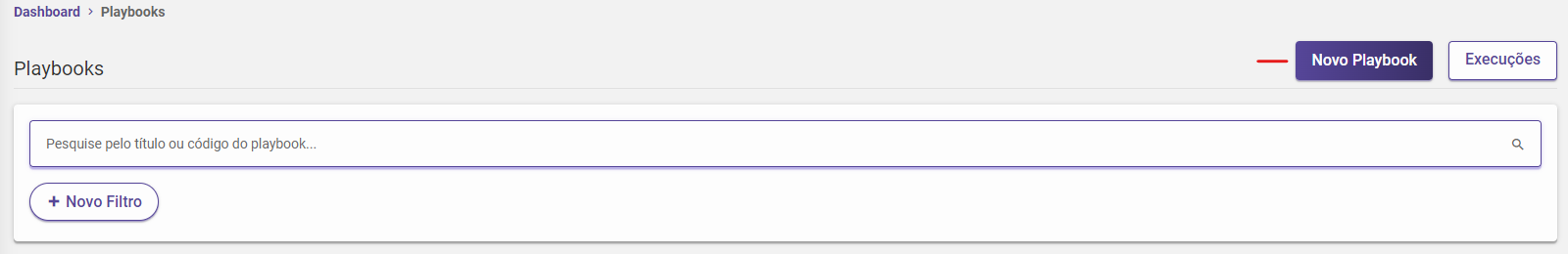 Clique no botão "Novo Playbook" para iniciar o processo de criação.